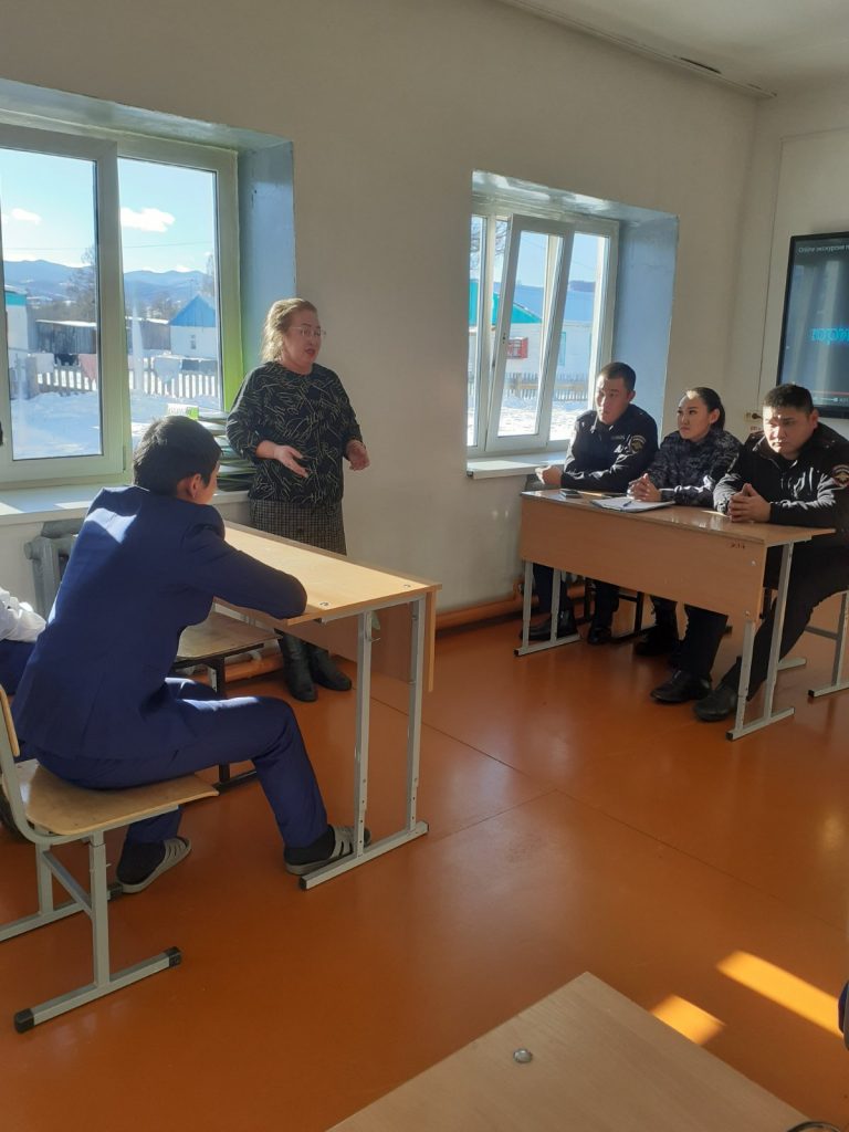 3 декабря ко Дню Юриста старший инспектор ПДН Ондар А.В. и участковый уполномоченным полиции МО МВД России Дзун-Хемчикского района Кара-Монгуш М.М. провели беседу по правовому просвещению воспитанником нашей школы. Так же проведены классные часы.