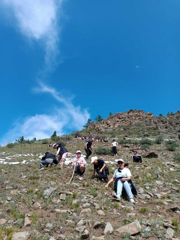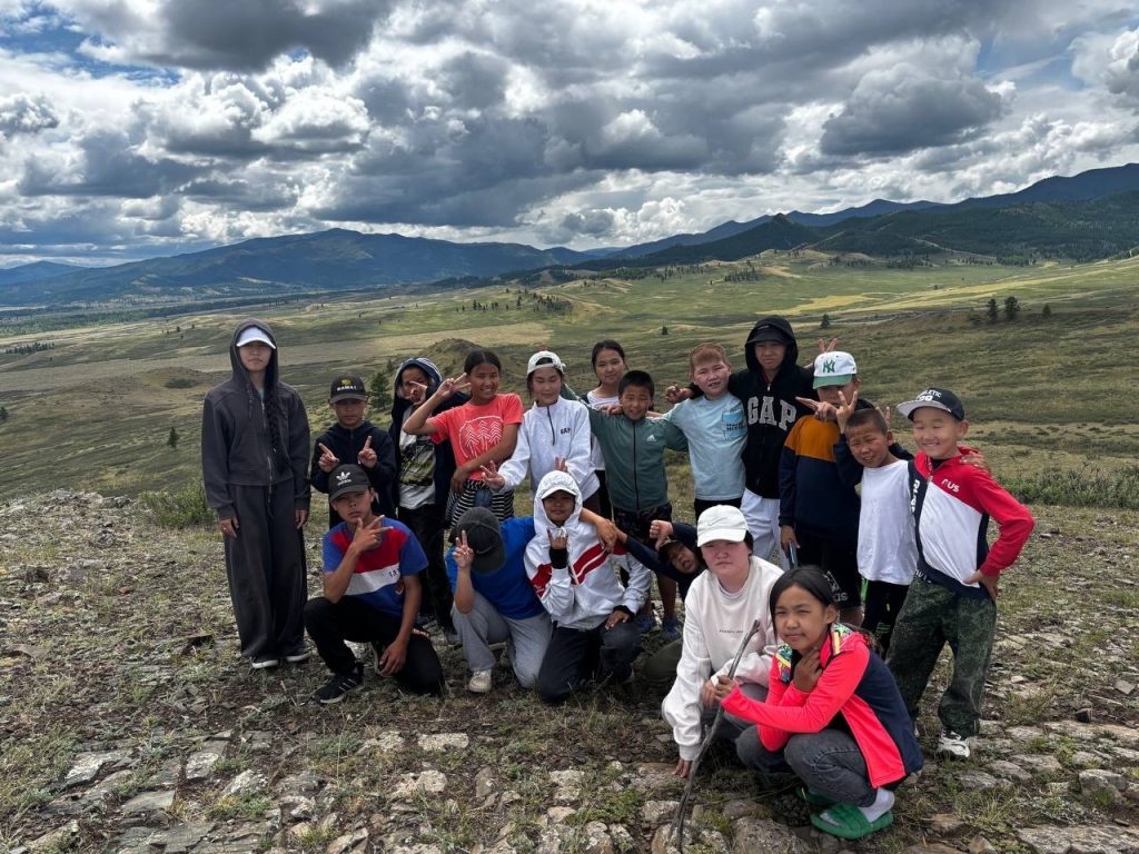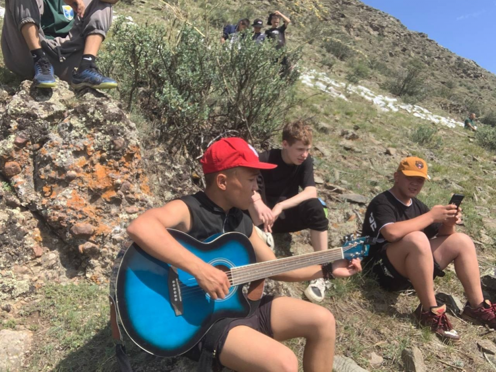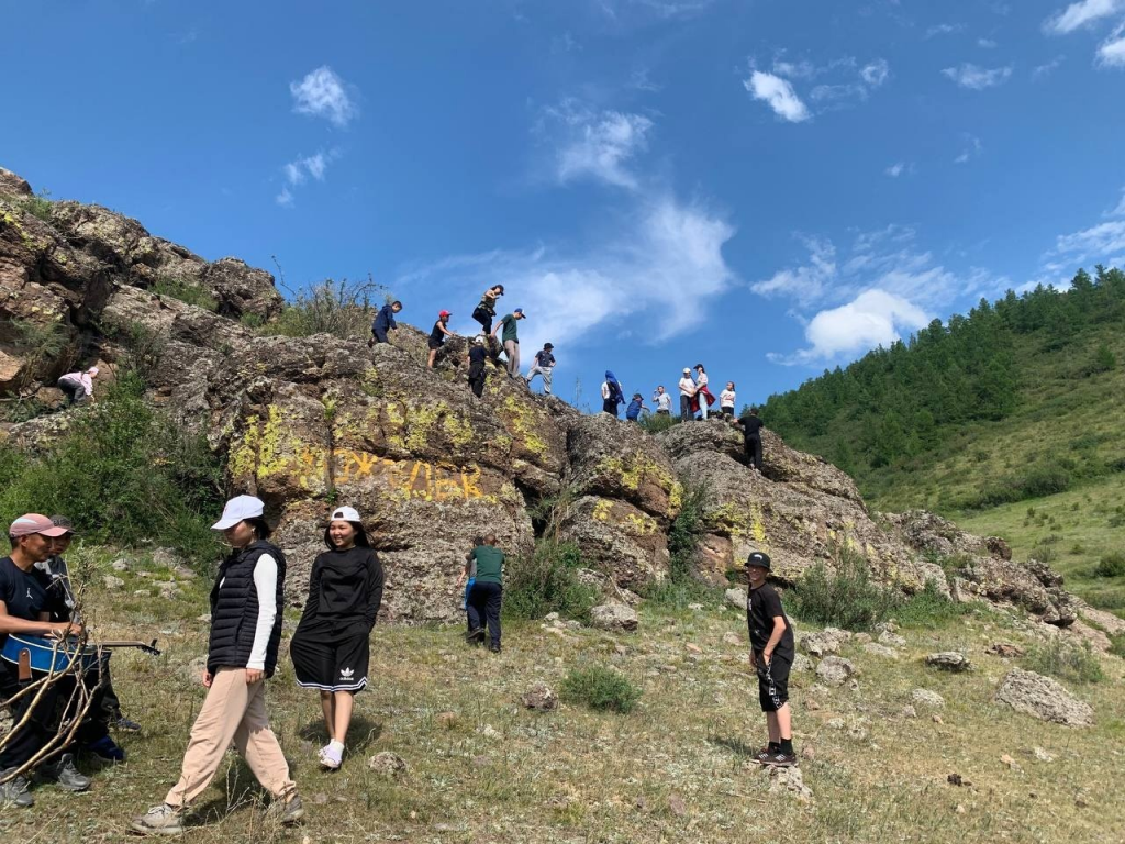 Третий день. Поднятие на гору с надписью «Ыраажы-Хем». Пеший поход всем очень понравился.