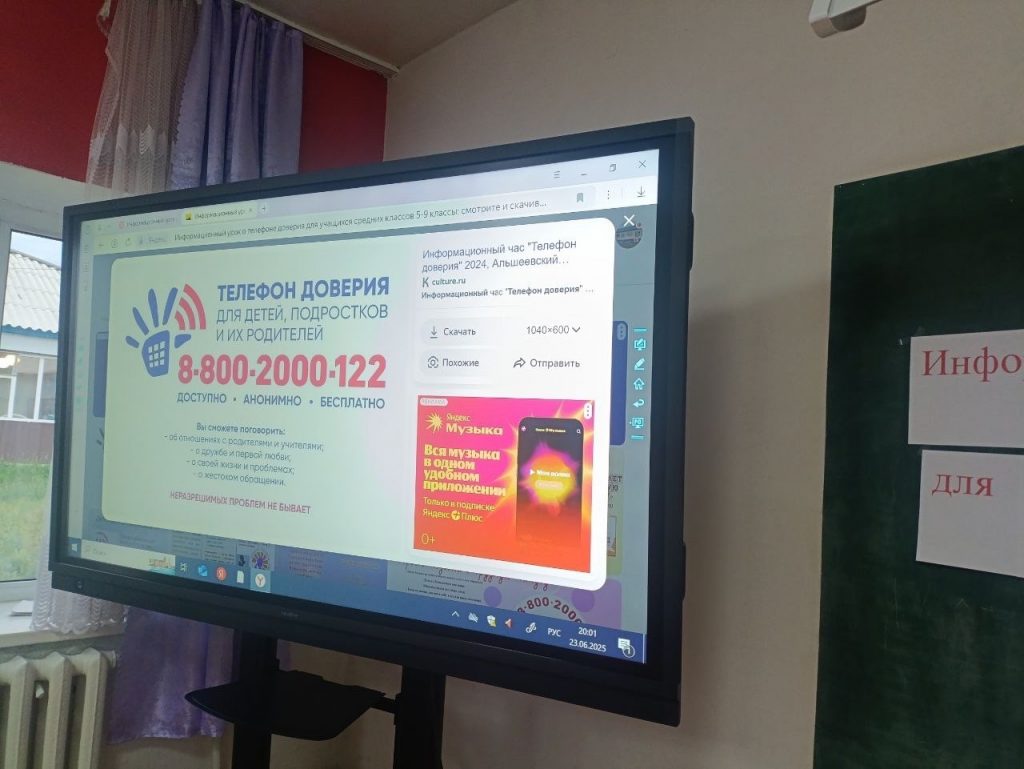 После утренней зарядки и завтрака с детьми был проведен информационный урок о Телефоне доверия для учащихся средних классов (5-9 кл.)