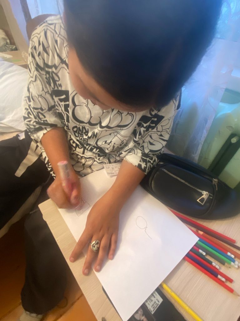 День начался по заведенной традиции с утренней зарядки, завтрака и линейки. После завтрака был проведен «Час обсуждения». Чтение и обсуждение рассказа М. Дубининой «Вредные пальчики» дети поделились своими впечатлениями о рассказе через рисунок.
